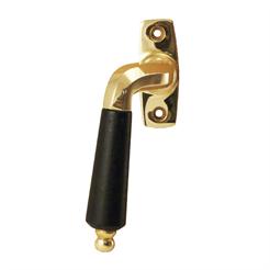 Presstøpt messing med grep i svartbeiset bøk.