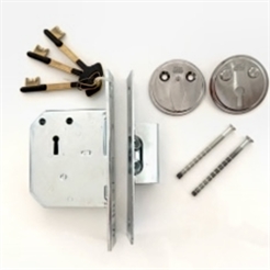 Sikkerhetslås med 3 nøkler, Låsen felles inn i døren over dørvrideren. Alt ligger skjult i døren, så det eneste som er synlig er nøkkelskiltet.