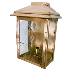 Vegglykt firkantet modell i ubehandlet kobber. Lampen er håndlaget i Norge.